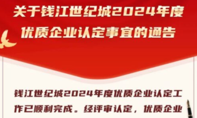 喜訊!杭州恒領(lǐng)科技有限公司獲評錢江世紀(jì)城 2024 年度優(yōu)質(zhì)企業(yè)